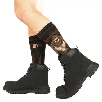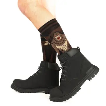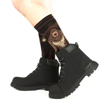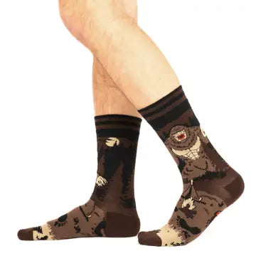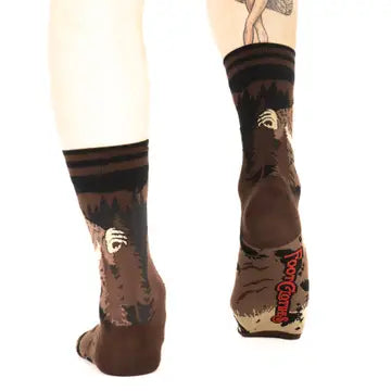 Stomp into mystery! With an earthy forest design and a rare Sasquatch sighting, these socks are your partners in stomping through life's mysteries. Office treks or home cuddles, they've got your feet covered comfortably – and in style! 🌲👣