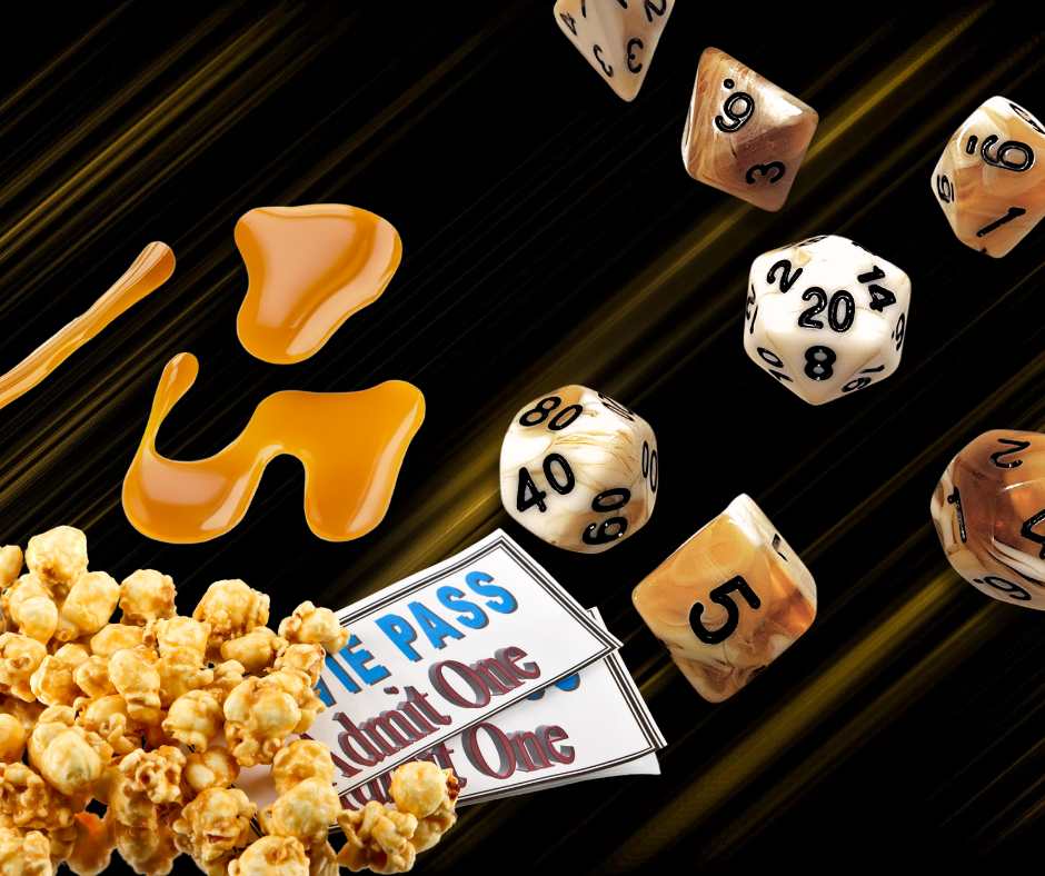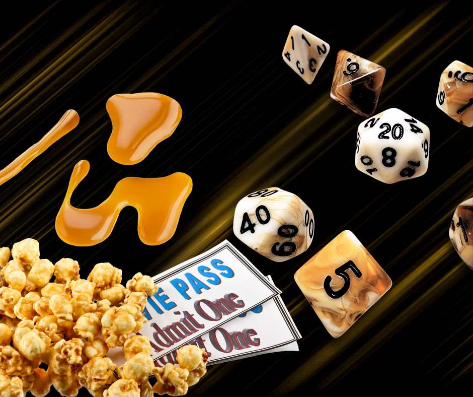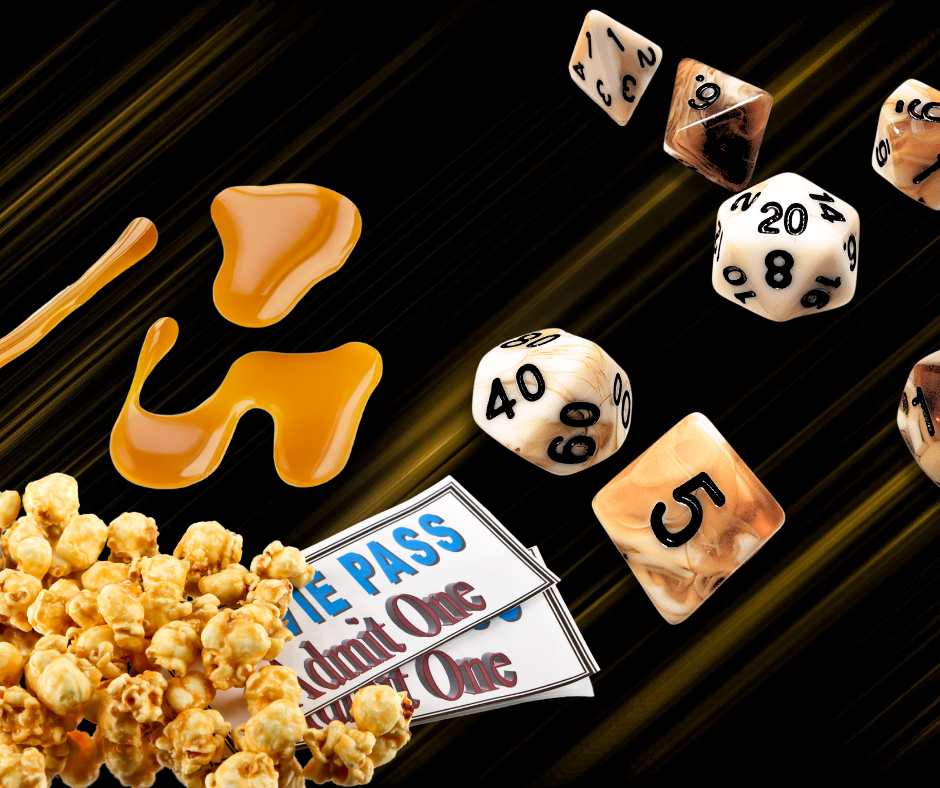 A 7 piece set of opaque white and translucent brown polyhederal dice that are worth daydreaming about.
