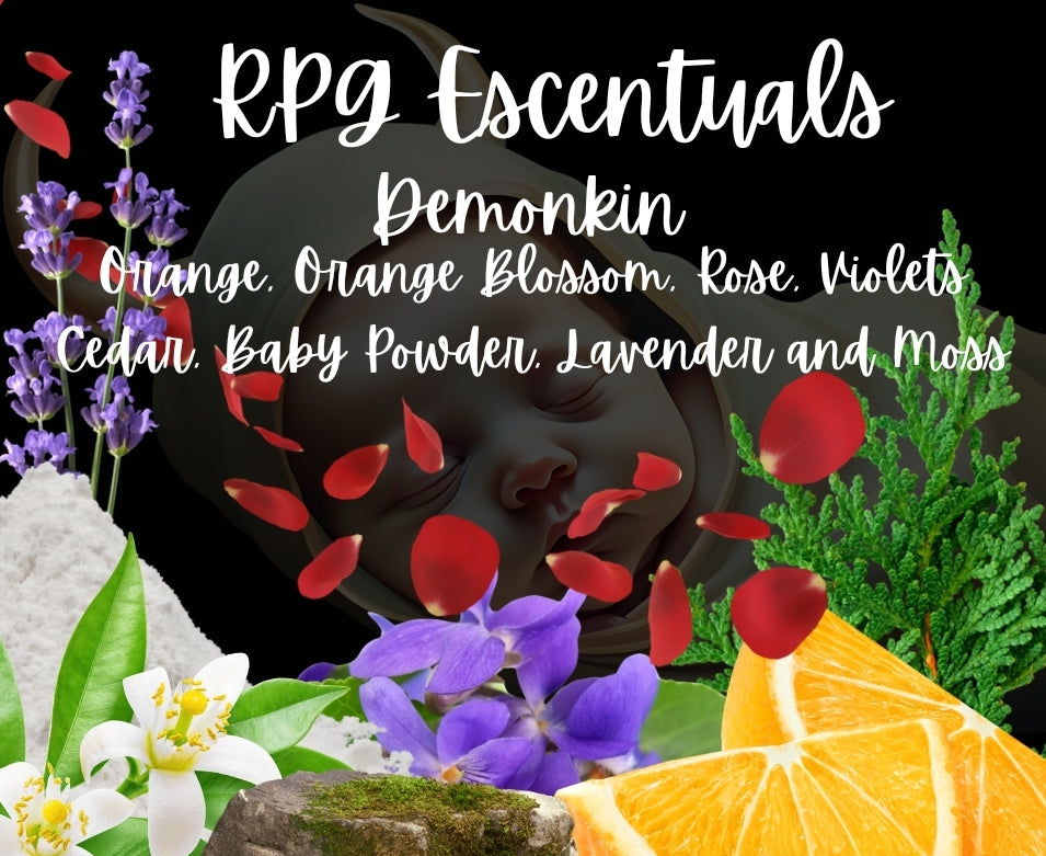 Immerse yourself in the enchanting scent of Demonkin - a delicate blend of baby powder, orange, orange blossom, rose, violet, lavender, cedar and moss. Experience a touch of innocence and the soothing effects of nature with each inhale. A truly unique and captivating scent. Try it now!