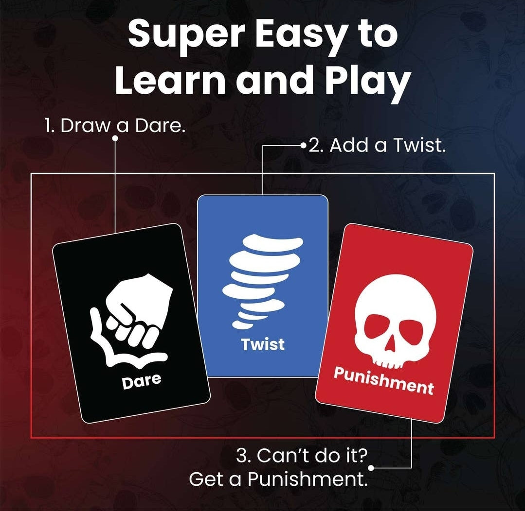 Combine Dares, Twists and Punishments for over 1,000,000 hilarious combinations guaranteed to give you hours of stupidly fun time.
