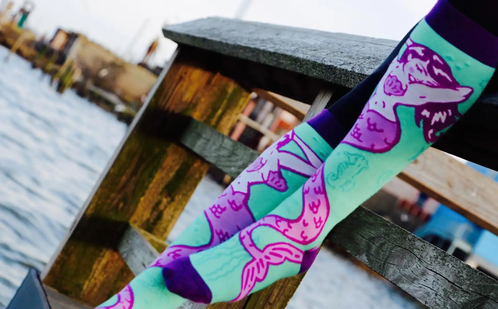 Seas the day in these retro inspired mermaid knee highs! Yeah, buoy.